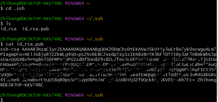 .ssh文件夹,id_rsa和id_rsa.pub分别代表私钥和公钥文件,我们将公钥取出。