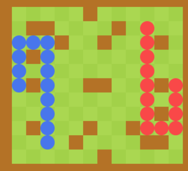 两条蛇的初始坐标为(11,1)和(1,11)
